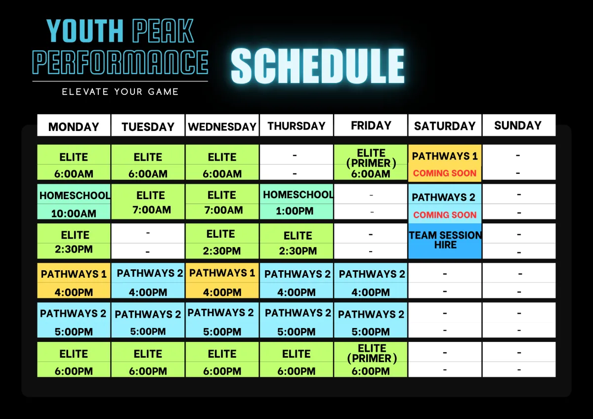Our highest tier. Early mornings. Late nights. Precision coaching. Small groups. Big goals. Built for rep athletes chasing scholarships, state squads, or national selection.
